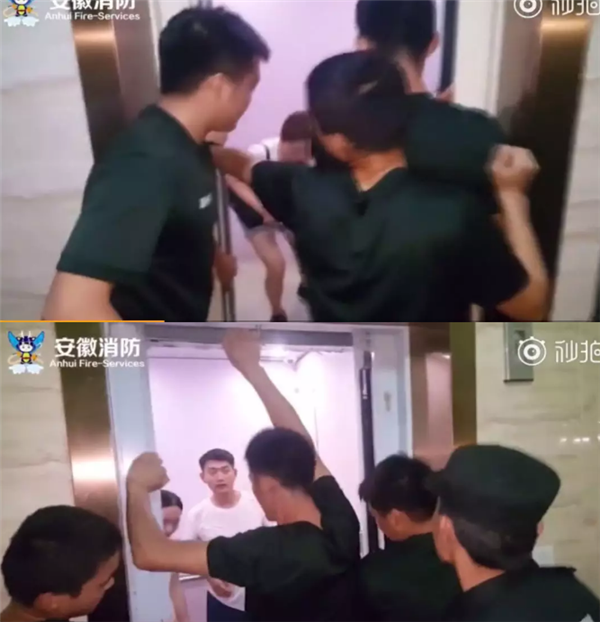 就在上个月,7月25日,阜阳市颍州区高速时代城一对夫妇被困在16层电梯内,消防员用电梯钥匙打开轿厢门,夫妇两人已热得满头大汗。这对夫妇刚被救出,小区内另一栋楼内又有一对夫妇被困电梯内,消防员也用电梯钥匙将两人救出。