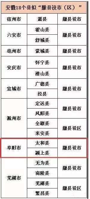 安徽明确启动撤县设市!阜阳太和县、颍上县在列,一不小心就成了市里面的人了