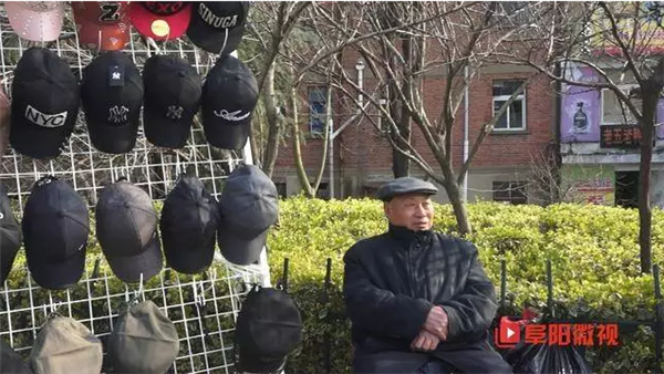 来自阜南县的方殿飞,青年时期从家乡来到阜阳,现在在魁星楼摆摊卖帽子为生。