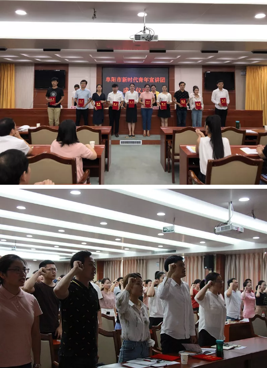 为深入学习宣传贯彻习近平新时代中国特色社会主义思想、党的十九大、团的十八大精神和习近平总书记关于青年工作的重要思想,认真落实团中央《关于在全团实施“青年大学习”行动的方案》工作要求,组织动员全市广大青年充分发挥生力军作用,市委宣传部、市委讲师团和团市委共同成立了阜阳市新时代青年宣讲团。